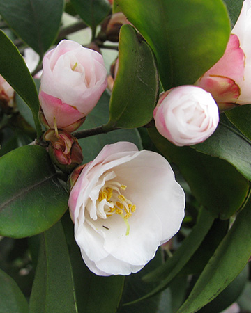 主要形態(tài)特征:花粉白色,花瓣基部具深粉紅色條紋,單瓣,小花型,平均花徑2.79cm,花瓣5枚。多枚花蕾頂生或腋生,開花極其繁密?;ㄆ?月下旬-4月,長達(dá)40天左右。嫩葉紫紅色,成熟葉片濃綠色...